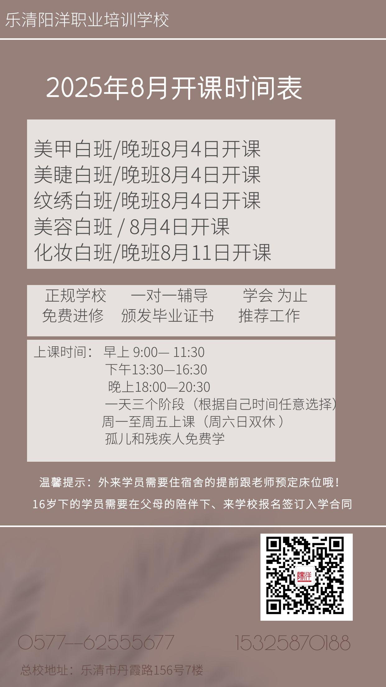 當(dāng)前位置:樂(lè)清市陽(yáng)洋職業(yè)技能培訓(xùn)學(xué)校 » 學(xué)校新聞2025年8月開(kāi)課時(shí)間表|樂(lè)清哪里有學(xué)化妝|柳市哪里有學(xué)化妝|虹橋哪里有學(xué)化妝|發(fā)布時(shí)間:2025-7-26 17:57:53 瀏覽次數(shù):2017 |