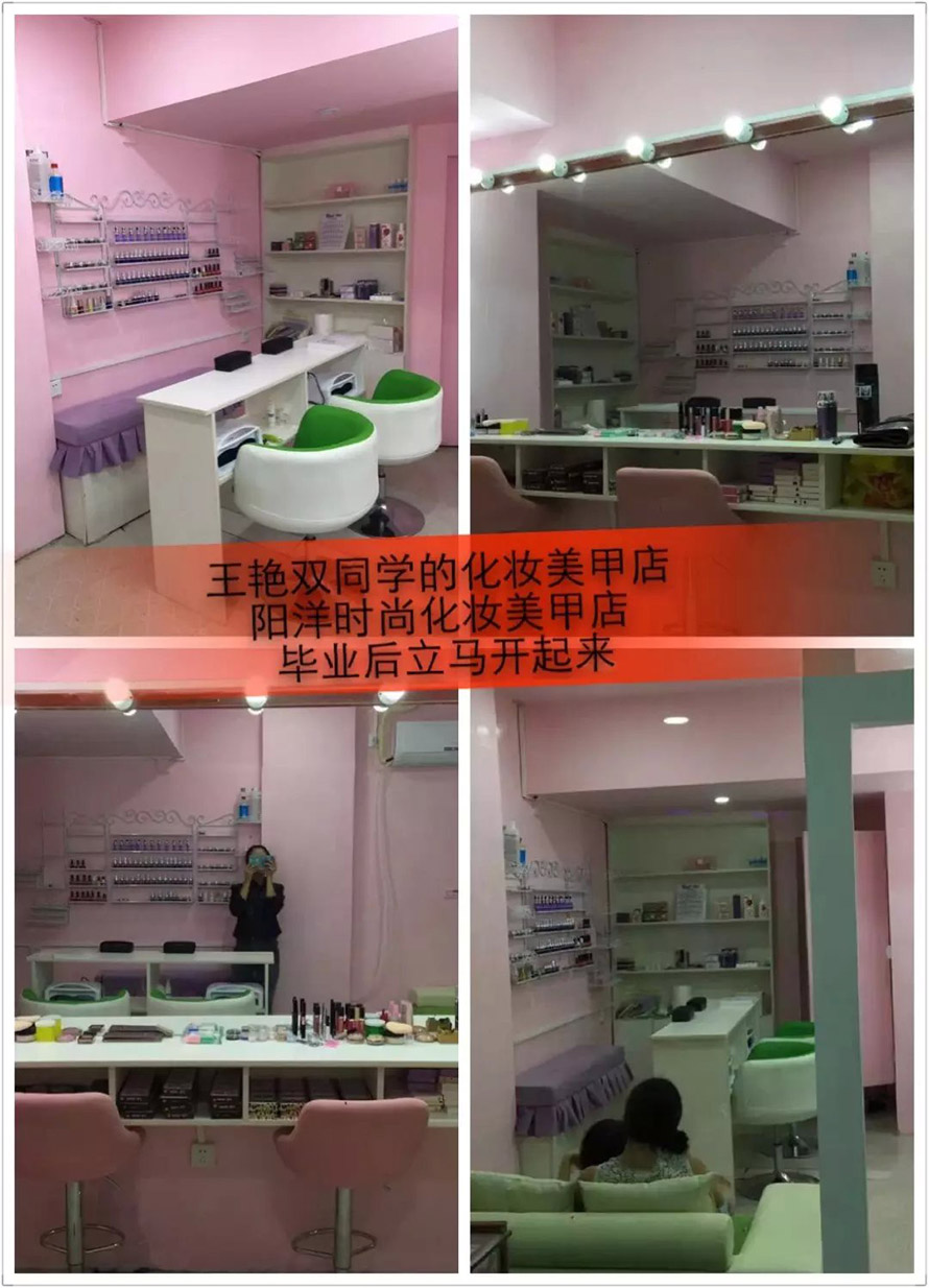 當前位置:樂清市陽洋職業(yè)技能培訓(xùn)學(xué)校 » 成功學(xué)員優(yōu)秀化妝學(xué)員王艷雙同學(xué)在回老家開的化妝美甲店——后宮化妝室發(fā)布時間:2015-10-18 10:17:52瀏覽次數(shù):1962 |