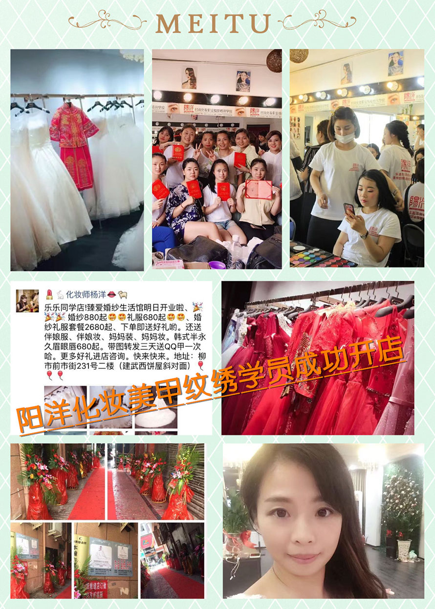 2016年第三屆陽(yáng)洋歡歡學(xué)員在本校學(xué)習(xí)了四個(gè)月化妝精英班,美甲就業(yè)班和韓式半永久,畢業(yè)后在柳市開了屬于自己的婚紗生活館!翻身做老板!成為美妝行業(yè)里的一份子。。