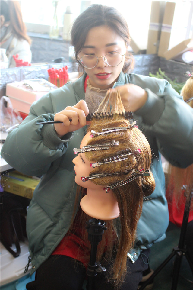 陽洋化妝美甲紋繡培訓學校也致力于實戰(zhàn)實用培訓,很多來我們這邊學習都是想就業(yè)或者自己創(chuàng)業(yè)的,所以培訓技術的同時也要滿足不同學生的需求,所以平時工作難度和強度要比正常教學會辛苦很多。但是看到學生滿載而歸的收貨時,這些付出都是值得的 【2017年第十屆化妝精英班發(fā)型考試花絮】