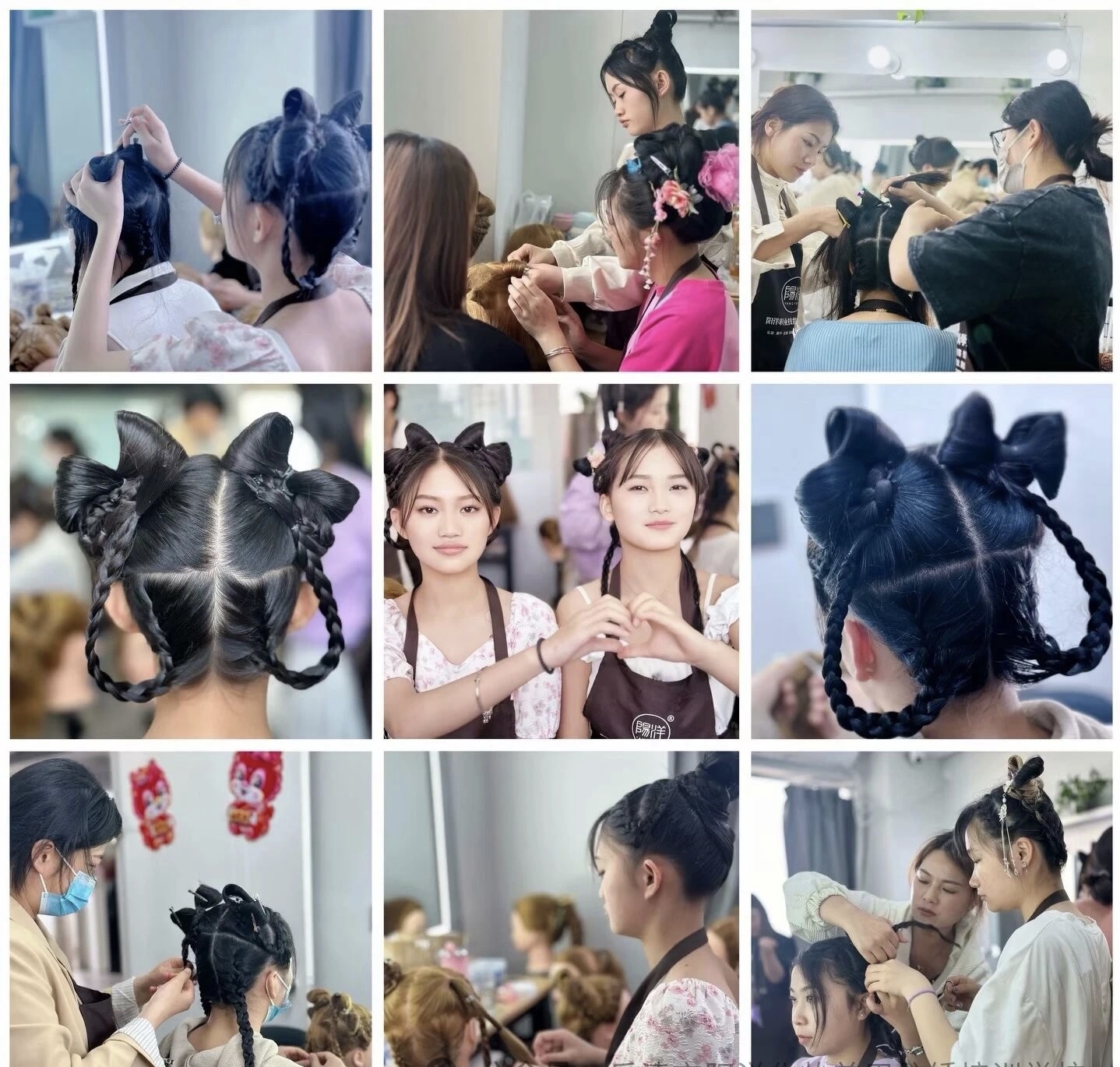 發(fā)型班的教學(xué)從簡(jiǎn)單到難, 老師帶領(lǐng)著大家一步步進(jìn)步起來(lái), 從一開(kāi)始簡(jiǎn)單的三股辮到現(xiàn)在千變?nèi)f化的各種造型, 成長(zhǎng)肉眼可見(jiàn),這邊是學(xué)習(xí)的好處。