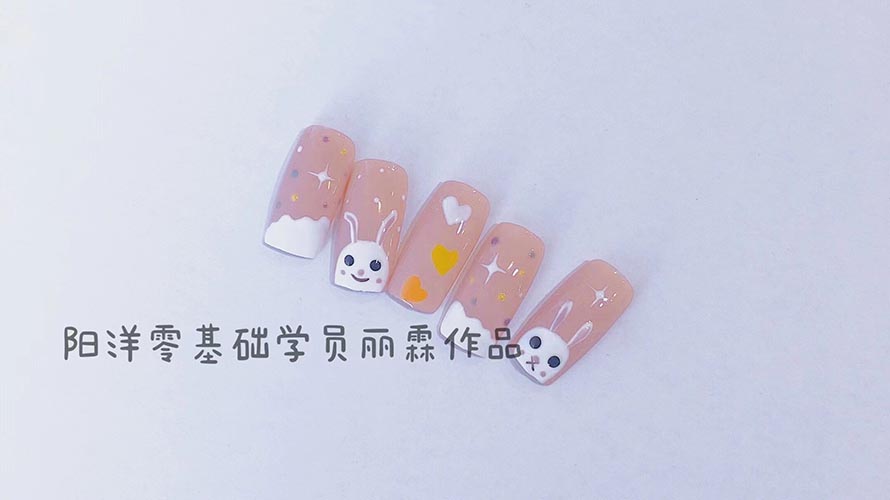 清新可愛的手繪小動物款 這是我們零基礎(chǔ)才學(xué)習(xí)一周多的麗霖同學(xué)的課堂作品 麗霖同學(xué)也是以前在工廠上班,覺得看不到未來,所以想學(xué)一門技術(shù)改變自己。 在朋友的介紹下了解了美業(yè),看到了美業(yè)的市場前景,所以選擇學(xué)習(xí)美甲。 在專業(yè)老師的授課指導(dǎo)下,從不會做美甲的小白,到現(xiàn)在能做手繪小動物,非常的不錯!