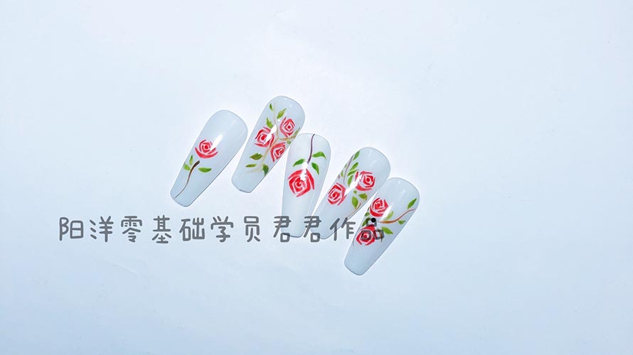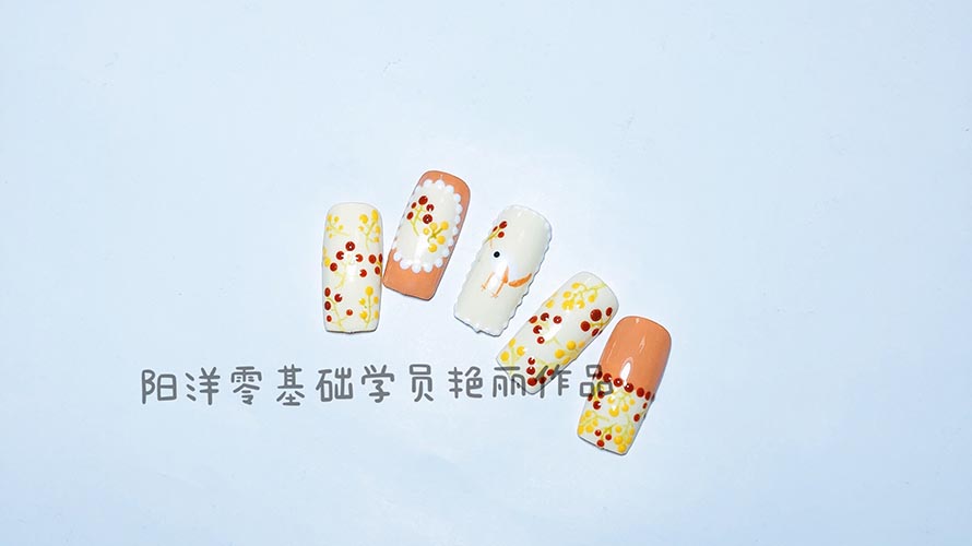 這些都是零基礎小白一步步學習過來的同學哦, 她們在老師的指導下都能慢慢的成長,現(xiàn)在都能完場一些有難度的手繪美甲了~