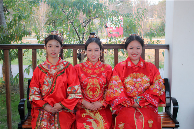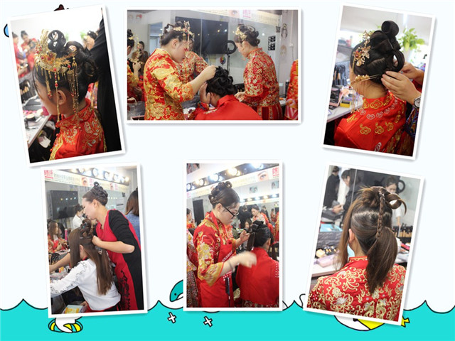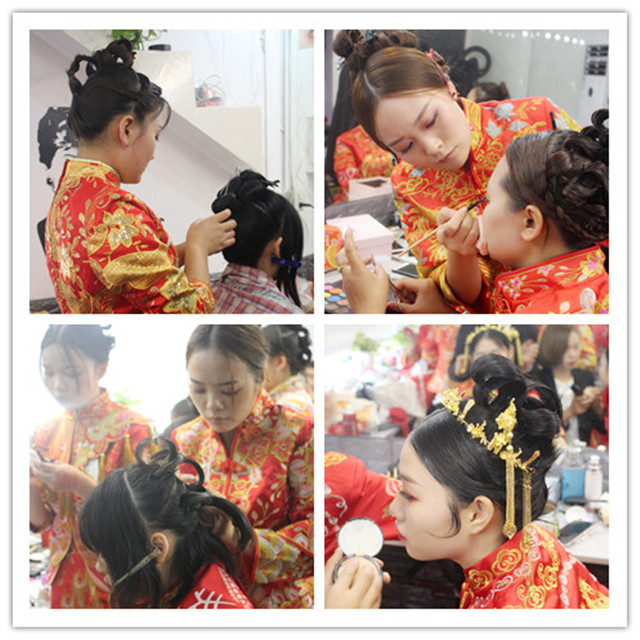 我們來(lái)看看同學(xué)們第一次做的中式新娘作品花絮吧 ![]() 同學(xué)們相互對(duì)練