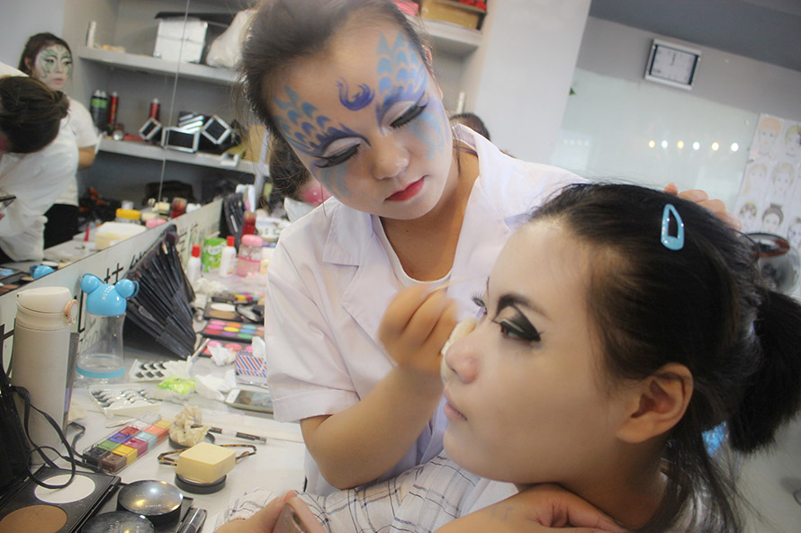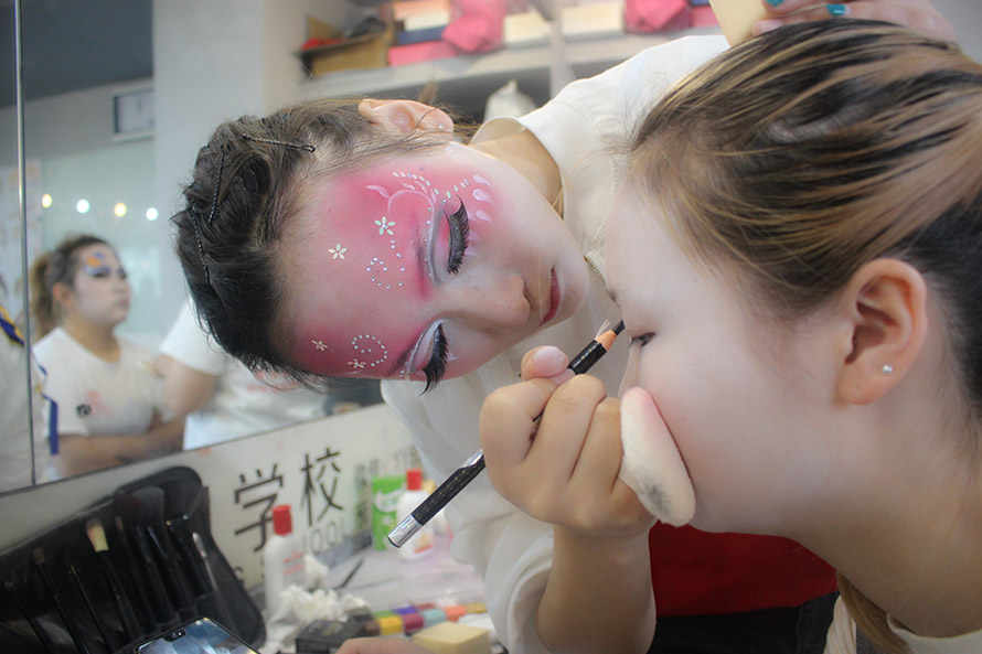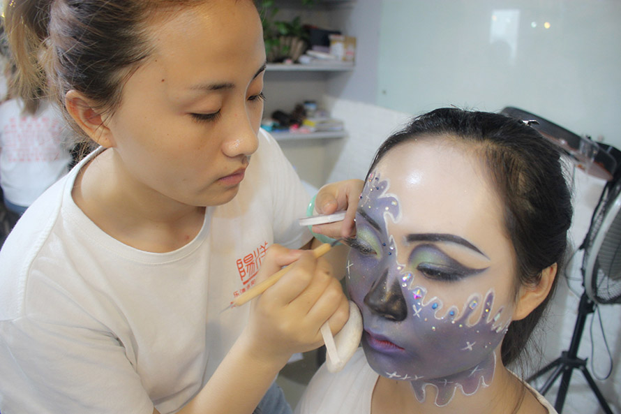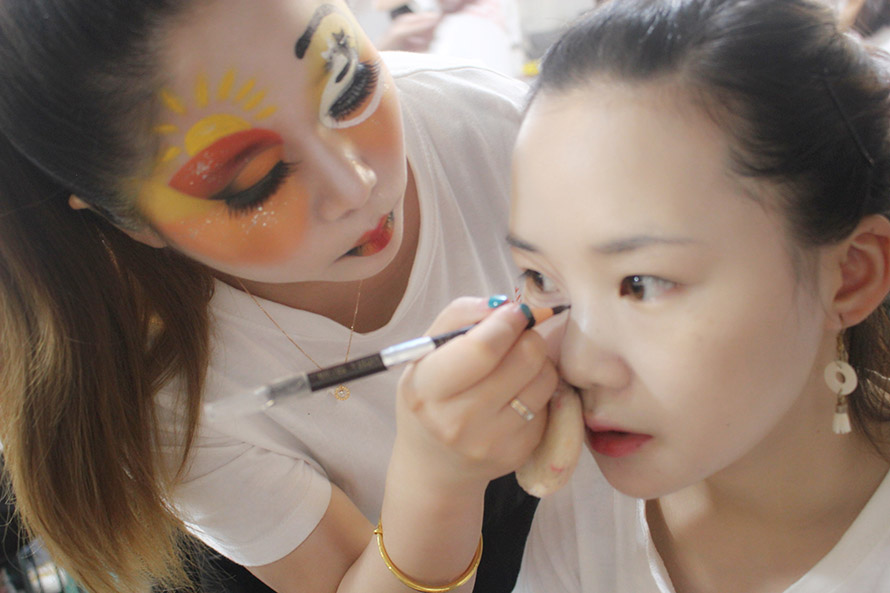 在陽洋化妝學(xué)?!拔摇睂W(xué)會(huì)了彩繪和舞臺(tái)妝