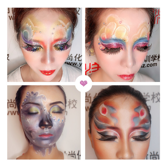 有一種驚艷,叫做創(chuàng)意妝! 從化妝小白到可以自由設(shè)計(jì)妝面的成熟化妝師,在陽洋學(xué)校我做到了。很多女孩子都喜歡化妝,然而把自己喜歡的事當(dāng)做事業(yè)去做是最幸福的事情! 創(chuàng)意妝,就是學(xué)員們通過自己的想象或者對(duì)某一件事物靈感而創(chuàng)想出來的妝面,隨意發(fā)揮,自由揮化!