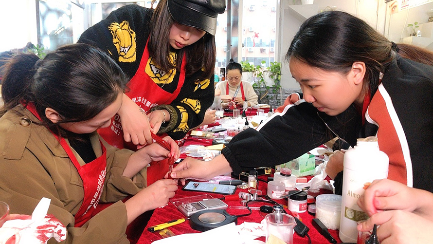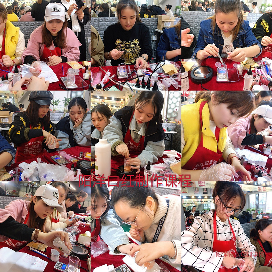 我們來看看同學(xué)們昨天學(xué)習(xí)口紅制作的課堂吧
