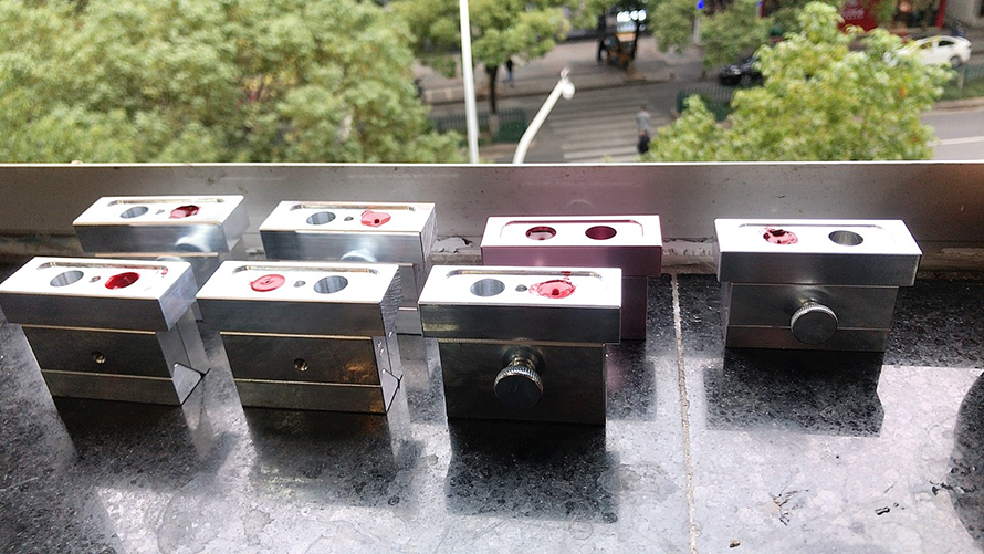 在經(jīng)過精確并嚴(yán)謹?shù)闹谱骺诩t色漿后,第一批口紅進入倒模階段,超級期待的有沒有,口紅色感,滋潤度,亮澤度,在沒有成功脫模前都還是未知數(shù),隱隱的期待,就像開樂tòu一樣