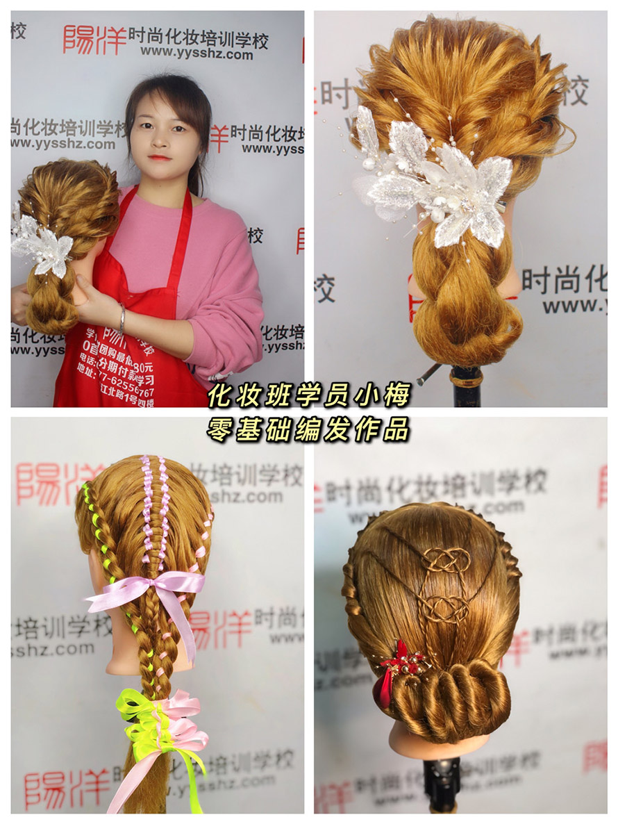 以上這些同學(xué)都是零基礎(chǔ)學(xué)習(xí),才學(xué)習(xí)一周哦。、 她們在老師一對一的指導(dǎo)下,從基礎(chǔ)的編發(fā)手法到 現(xiàn)在能夠完整的做出 各種編發(fā)造型、她們每天都非常的努力學(xué)習(xí),現(xiàn)在都很棒,加油! 陽洋化妝培訓(xùn)學(xué)校常年招生:不限年齡、不限地區(qū)、不限性別、 對美業(yè)感興趣,想學(xué)一門技術(shù)的都可以來咨詢哦~