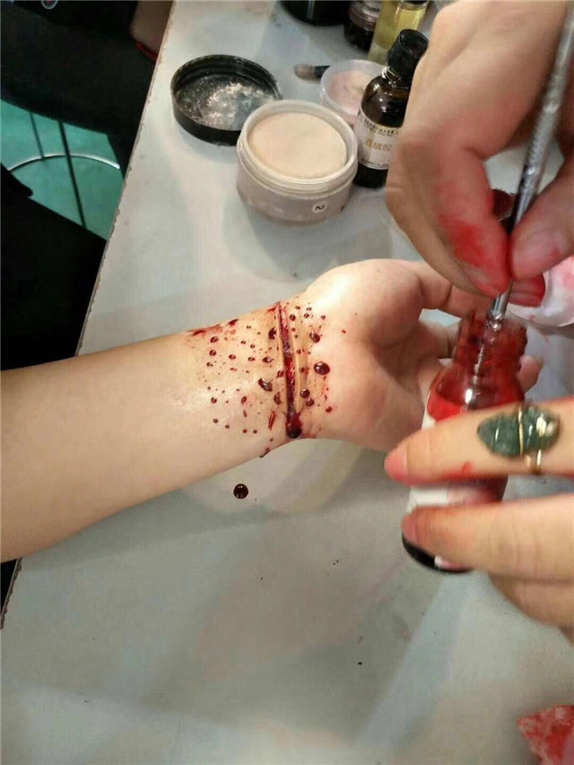 小時候在電影里看到演員們受傷的鏡頭,就在想這是用什么東西弄的呀,豬血?番茄醬?紅墨水?現(xiàn)在通過接觸到化妝這個行業(yè),才知道血漿有很多種顏色的,也有很多種粘稠度的,干的,稀的,才能做出逼真的傷口效果,相信上過課的同學們也有和我一樣的想法吧,還沒有接觸到影視妝的童鞋們,今天我們就一起來學習一下吧!