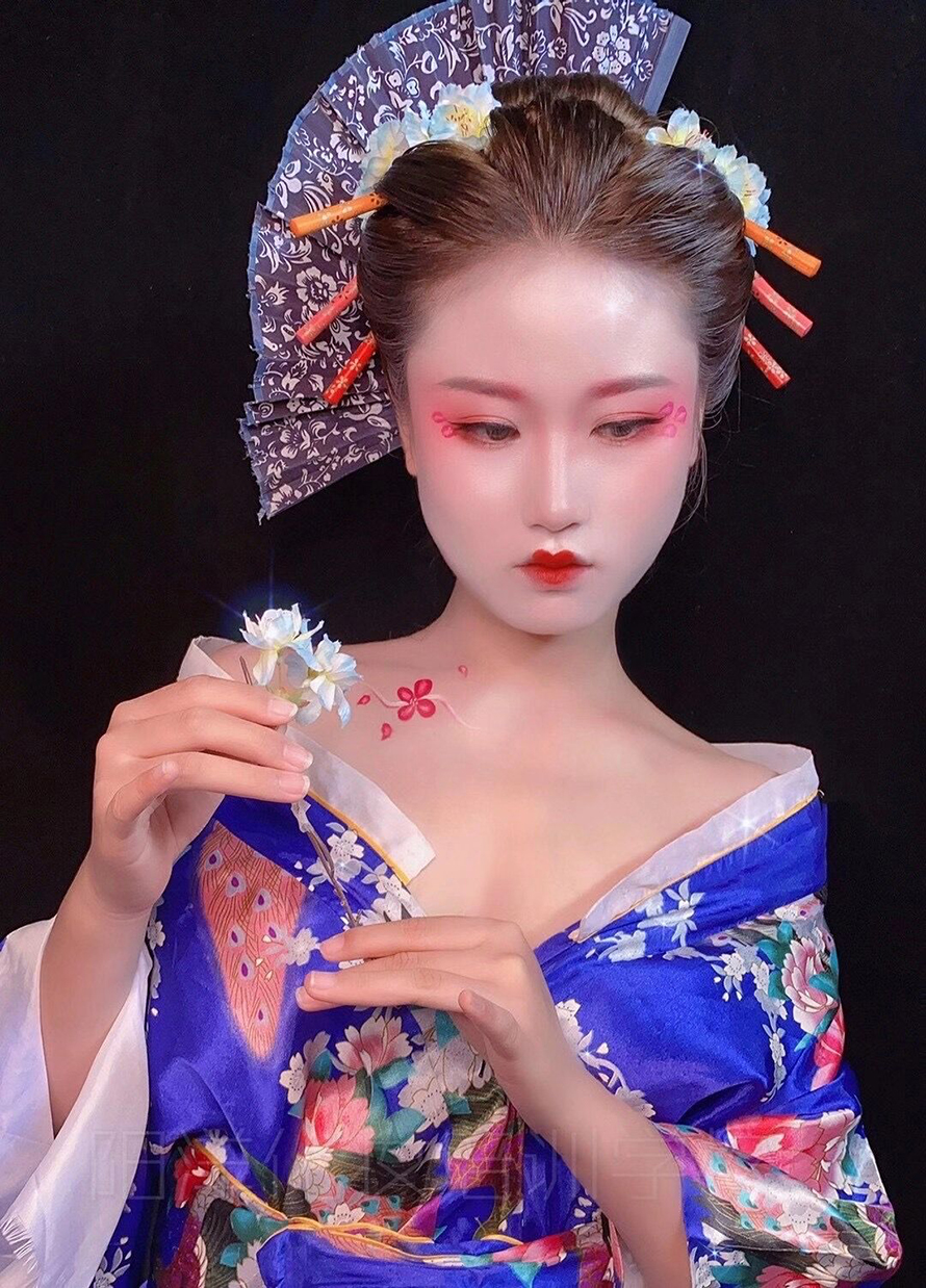 絕美藝妓妝~帶你領(lǐng)略日系風(fēng)情 今天帶來的是日本藝妓妝 特別適合拍照~創(chuàng)意~凹造型~ 今天的藝妓美美噠 模特:本校學(xué)生——田瑩慧 妝發(fā):菲菲老師
