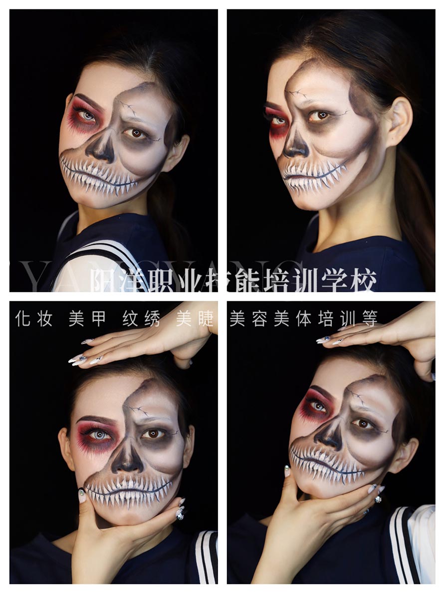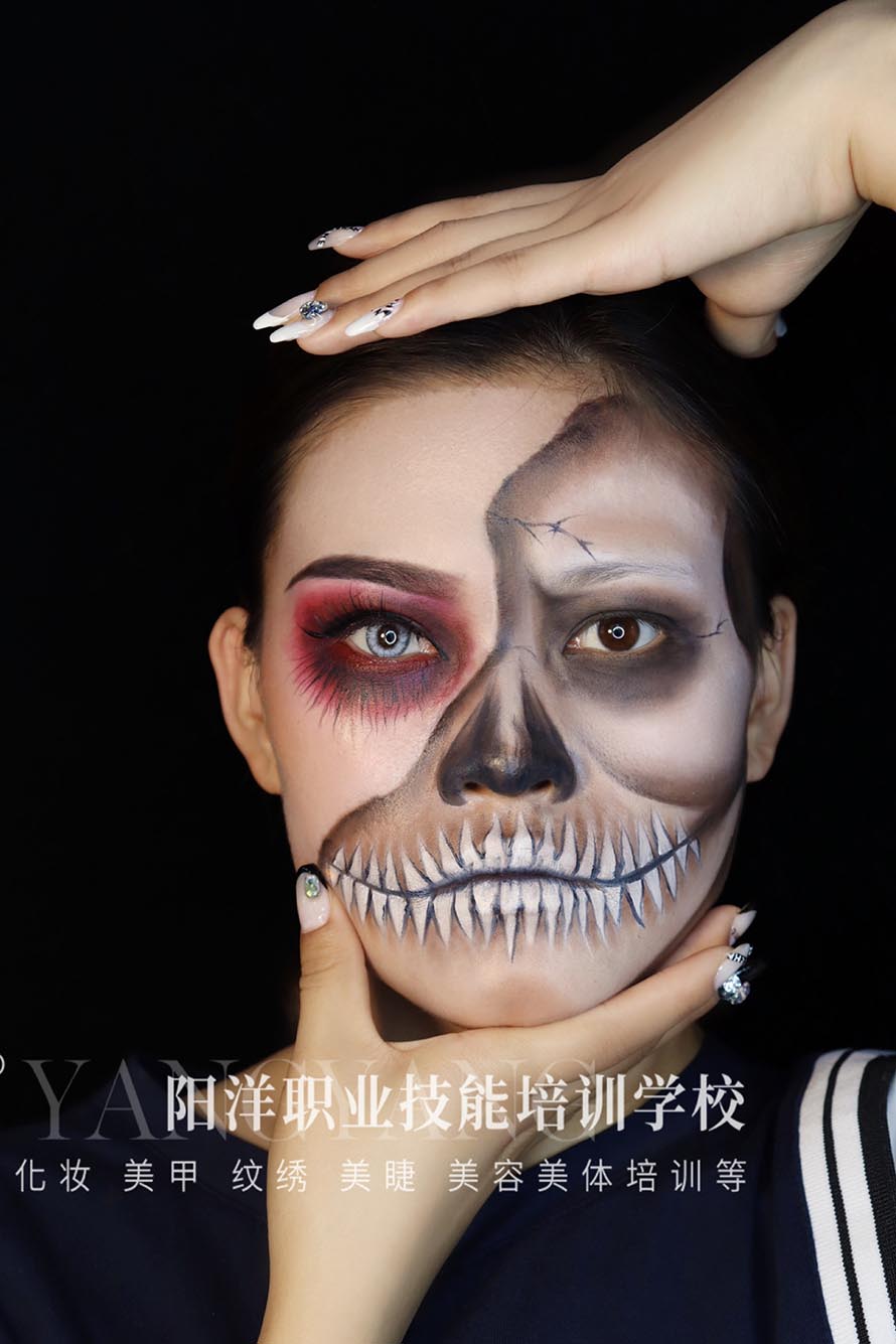 當(dāng)前位置:樂(lè)清市陽(yáng)洋職業(yè)技能培訓(xùn)學(xué)校 » 時(shí)尚彩妝作品樂(lè)清哪里有學(xué)化妝?柳市哪里有學(xué)化妝?#骷髏妝怎么畫(huà)?發(fā)布時(shí)間:2022-11-13 17:09:15瀏覽次數(shù):1977 |